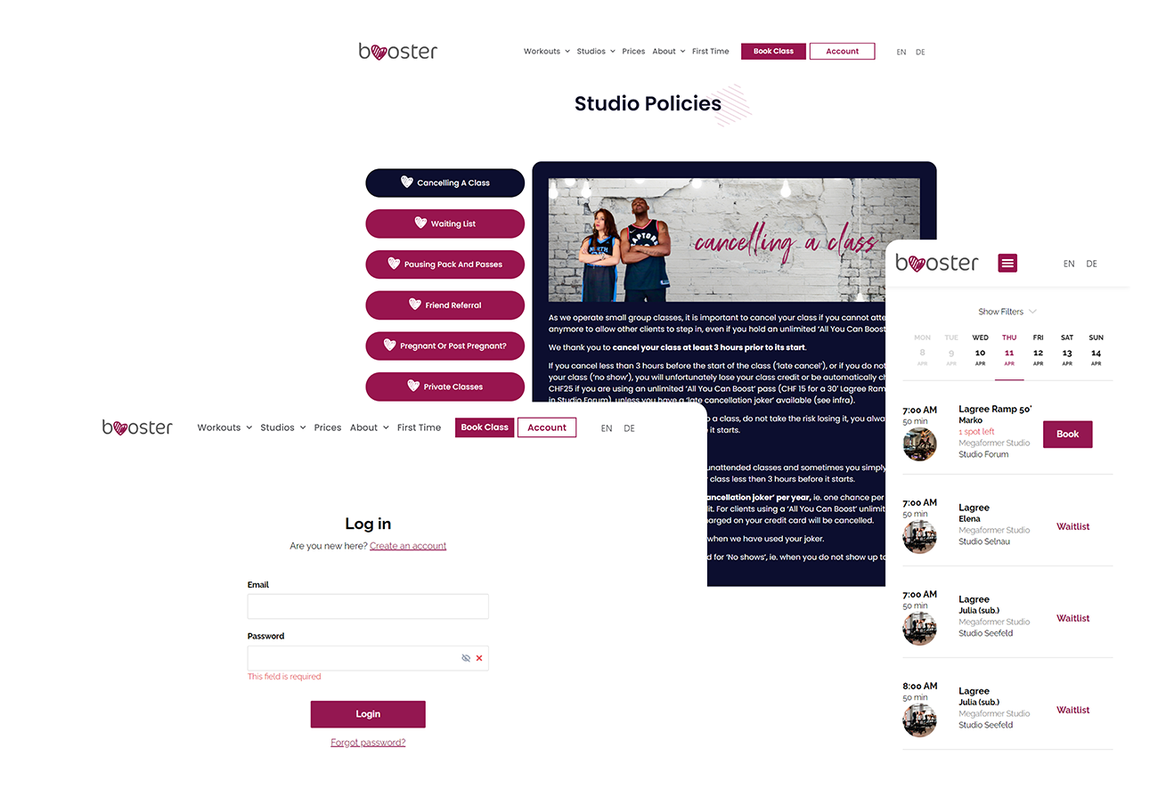 Le site web remanié a amélioré la visibilité en ligne, l’efficacité des réservations et l’engagement des clients. Booster Transform a enregistré une augmentation des réservations, amélioré le confort des clients et renforcé sa réputation de studio de fitness haut de gamme à Zurich.