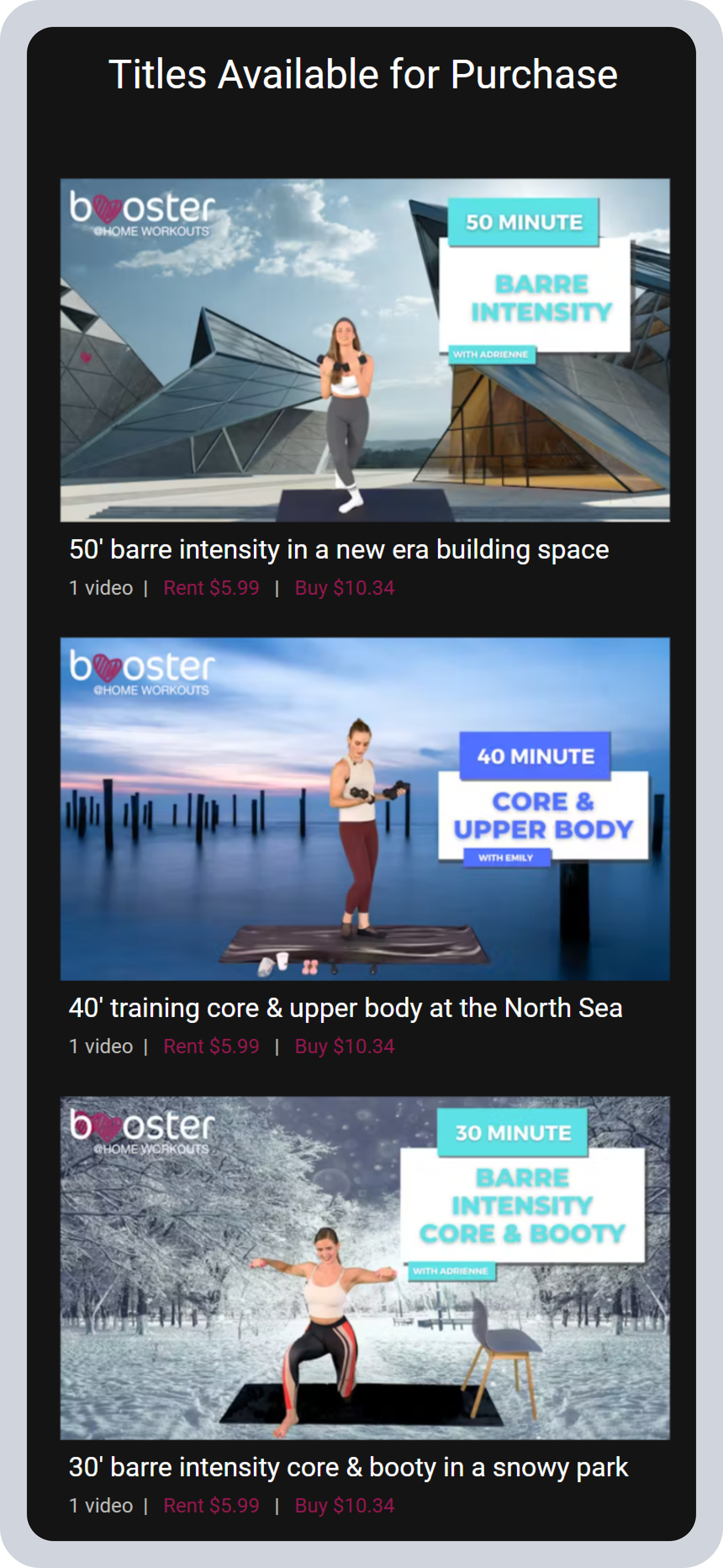 Nous avons soigneusement conçu chaque page d’entraînement pour Booster Transform, en mettant en avant les caractéristiques uniques de la méthode Lagree, du Lagree Ramp, du Barre Intensity et des entraînements @home. En combinant des visuels attrayants avec un contenu concis et axé sur l’utilisateur, nous avons créé une expérience immersive qui met l’accent à la fois sur l’efficacité et l’accessibilité de chaque programme de remise en forme.