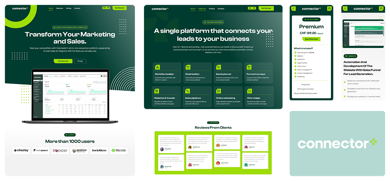 Le nouveau site communique clairement et efficacement les capacités tout-en-un de Connector, permettant aux entreprises de gérer le marketing, les ventes et les relations avec les clients en un seul endroit. En présentant des niveaux de prix transparents et des ensembles de fonctionnalités robustes, le site Web a amélioré la compréhension de l’utilisateur, la clarté de la conversion et a positionné Connector comme une solution crédible et efficace pour les entreprises suisses.