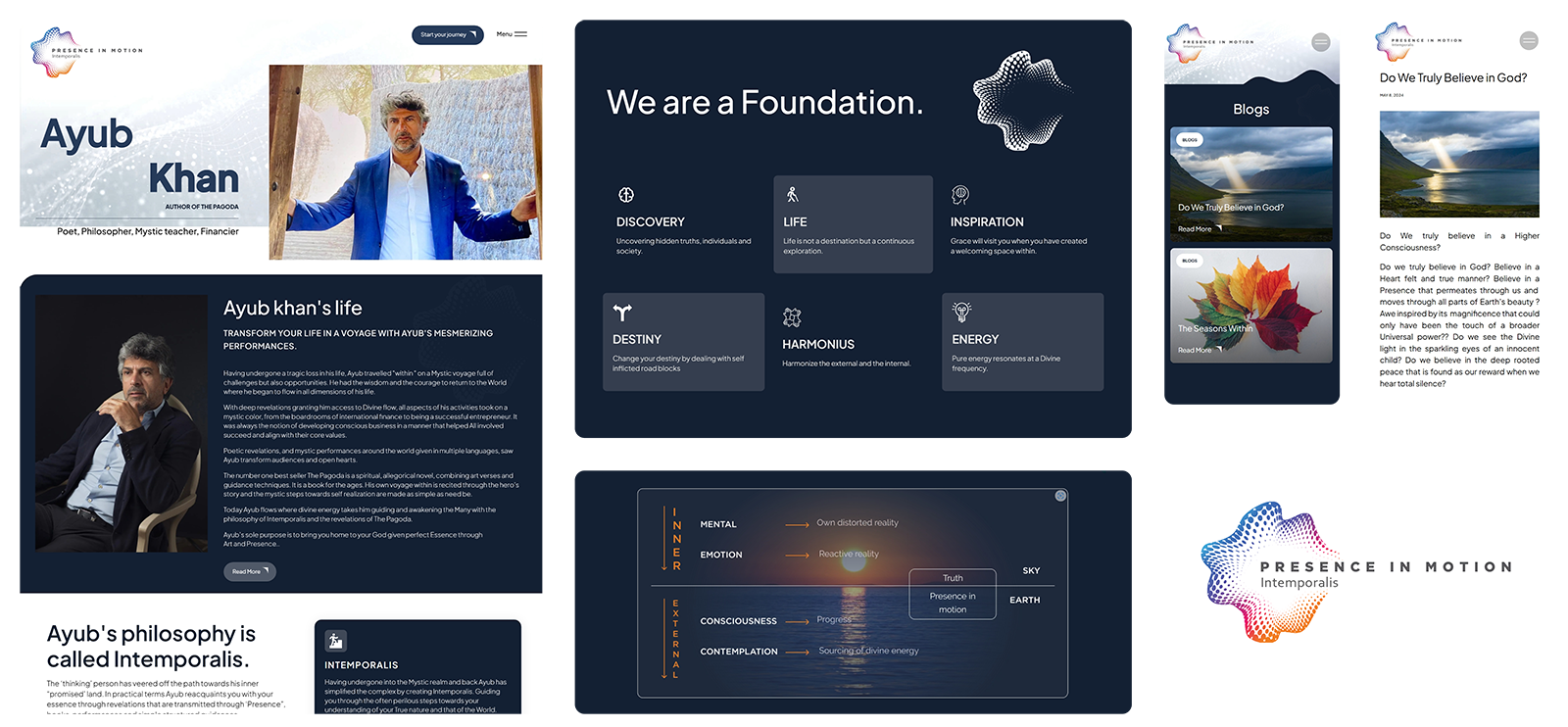 Ayub avait besoin d’un espace numérique qui traduise fidèlement la profondeur de sa philosophie spirituelle, de ses spectacles mystiques et de ses services contemplatifs. Le site web devait être métaphysique, mais accessible, équilibrant la narration poétique avec une navigation claire pour aider les chercheurs à explorer les enseignements, à s’engager dans le contenu et à s’embarquer dans leur propre voyage intérieur.